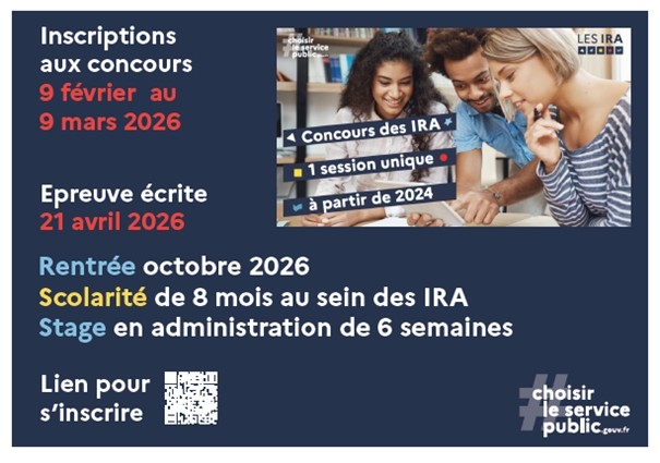 Paru au JO du 24 janvier, l'arrêté du 22 janvier 2026 portant ouverture de la session 2026 des concours d'accès aux instituts régionaux d'administration est disponible :